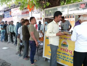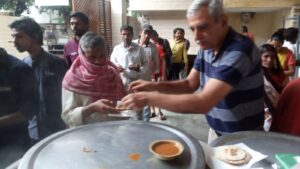 The noble project of providing nutritious food to daily wagers at just ₹5 per plate was initiated alongwith Arya Samaj Mayur Vihar Phase 1 five years ago, with the aim of addressing the issue of hunger and malnutrition among the vulnerable population. During the pandemic the overwhelming response of the community to support the project was incredible. Over the years we have been able to expand the project providing food at various locations. We distribute food outside Lal Bhadur Shastri hospital, Sanjay Gandhi hospital and Mahavir hospital on the days when morning OPD is functional. The food distribution was also started at BHIM colony. The project seeks to ensure that daily wagers and patients visiting hospitals have access to affordable and nutritious food, which can help improve their health and well-being.